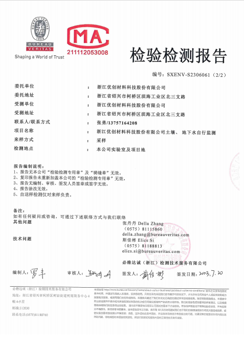 浙江優(yōu)創(chuàng)材料科技股份有限公司土壤、地下水自行監(jiān)測(cè)
